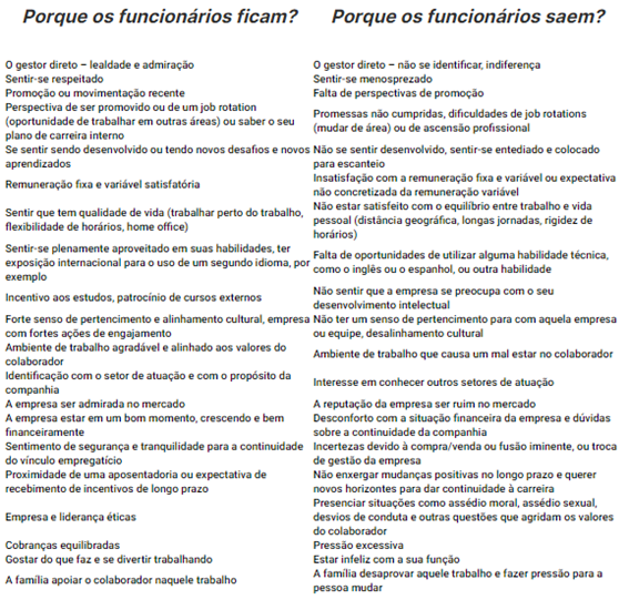 Porque os “recursos humanos” vão embora? Alguns dos motivos mais comuns são: